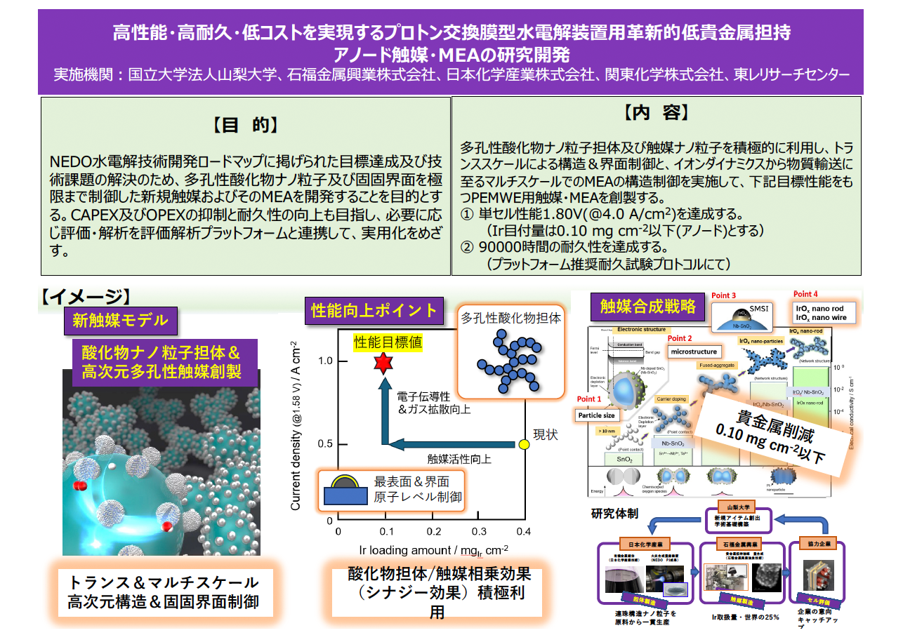 6)ADVANCED_PEMWE「高性能・高耐久・低コストを実現するプロトン交換膜型水電解装置用革新的低貴金属担持アノード触媒・MEA の研究開発」