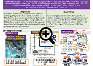 Beginning in 2025, we launched seven new initiatives under the “ADVANCED Project” (Development of Elemental Technologies for Next-Generation Fuel Cells and Water Electrolysis). Building upon our previous accomplishments while integrating innovative approaches such as automated experimentation, we aim to develop technologies that achieve the high performance, high durability, and low cost outlined in the NEDO Fuel Cell and Hydrogen Technology Development Roadmap (NEDO Technology Map).