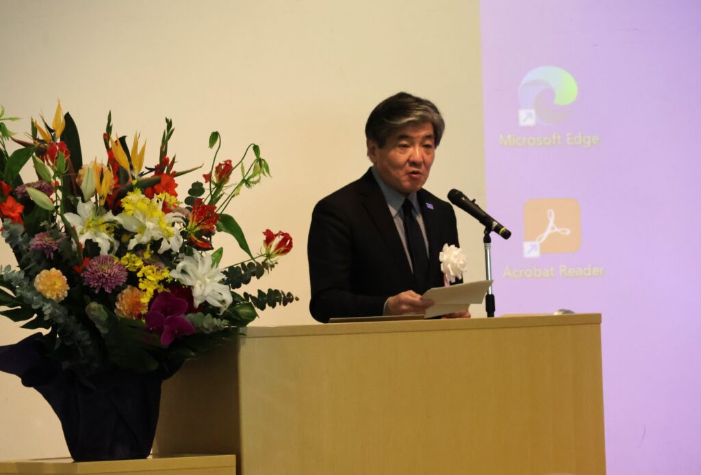 初めに、実行委員長を務める飯山明裕センター長による開会挨拶と中村和彦学長による主催挨拶の後、山梨県産業政策部 有泉清貴部長よりご祝辞をいただきました。