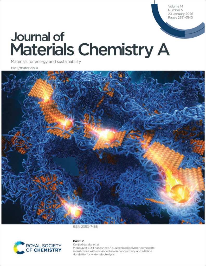 クリーンエネルギー研究センター、水素・燃料電池ナノ材料研究センターの宮武教授らの論文が、英国王立化学会(Royal Society of Chemistry)が発行する学術雑誌「Journal of Materials Chemistry A」に掲載され、表紙にも採用されました。