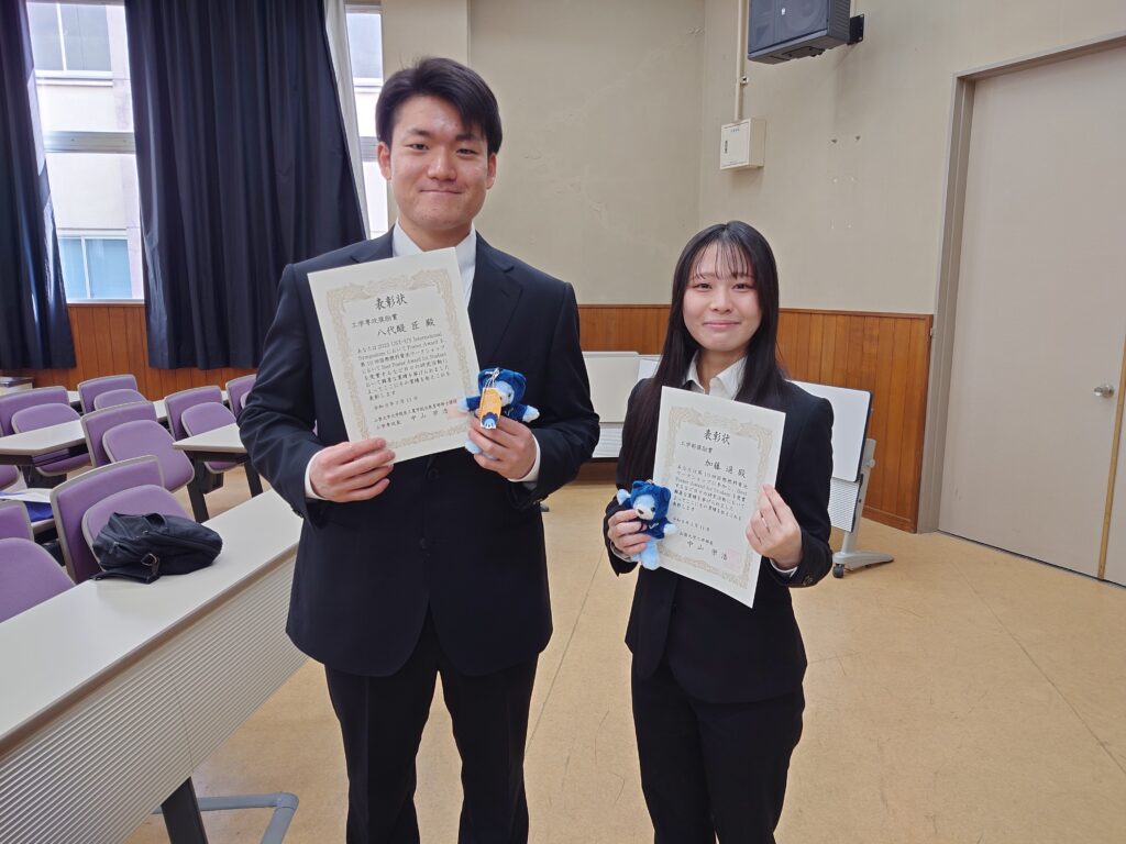 工学部・工学専攻奨励賞表彰式が挙行され、八代醍匠さんと加藤遥さんが受賞しました